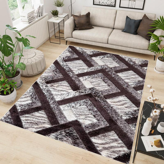Sold outShaggy Brown Block Area Carpet